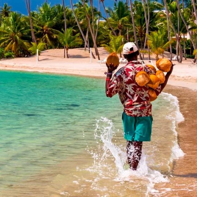 Live the unique experience of Saona Island, the most spectacular destination in the Caribbean! Begin your adventure aboard a catamaran where you will enjoy tropical music and impressive views as you sail towards this paradise island. Upon arrival, you will be greeted by white sand beaches and crystal clear waters perfect for swimming and relaxing in the sun. Immerse yourself in the vibrant waters snorkeling, explore the exotic natural pools filled with starfish and enjoy a delicious typical Dominican lunch surrounded by palm trees. This tour offers the perfect balance between adventure and relaxation, creating unforgettable memories. Book now and discover paradise on Saona Island!