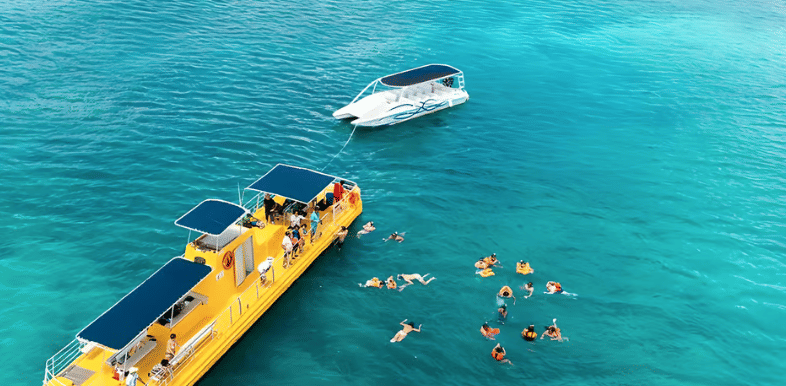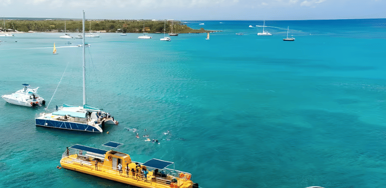 We will pick you up at your hotel at the reception with our free transportation. Transportation is comfortable aboard an air-conditioned mini-van. The pick-up tour in the different hotels starts at 10:30. Once finished (10:50) and after 5 minutes of travel we will cross the fishing village of Bayahibe to arrive at the beautiful public beach where you will board the only semi-submersible ship in the Dominican Republic. You will observe the corals, fish, turtles, rays and sometimes the manati and dolphins who come to greet us !! and the remains of a wreck nicknamed the Atlantic Princess where our diver prepares a surprise for you! All while sitting comfortably in our submerged section of the boat underwater with its 46 large windows. During the excursion refreshments : water, soda, rum, will be served while you can enjoy the beaches and the coast of Bayahibe. For those who wish, snorkeling equipment is provided and we will stop at a beautiful reef that you can explore during 1 hour. One of our instructors is available to swim with you if you wish. This is a wonderful excursion designed for all ages. Bring a bath towel and clothes for swimming, camera The return to your hotel will be at 1:30 where you can enjoy your buffet and restaurants after this activity Our staff speaks Spanish, English and French. Once you arrive at your hotel before the excursion you can contact us on Cell 01 829 318 35 34 whatsapp