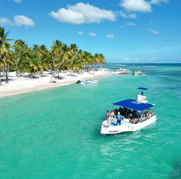 A transport will be waiting for you at the taxi stand, located at the exit of the cruise terminal, where all passengers from your cruise will gather. The driver will drive you to our office in Bayahibe, the starting point of the adventure. Join us in Bayahibe for an adventure aboard our awaiting boat, perfect for families. Get ready for an intimate journey to Saona Island! We'll start by exploring Penon, where our guide will delve into its history and the Taino people. Then, we'll navigate through mangroves, passing by thriving Palétuvier trees. Upon arrival at Saona Island, we'll visit Mano Juan village, observing local life amidst colorful houses and quaint shops. A stop at a turtle nursery managed by locals offers insight into their conservation efforts, although seeing newborns isn't guaranteed due to seasonal changes. Lunchtime offers a taste of Dominican cuisine with breathtaking views of Saona Beach. During lobster season (July 1st - February 29th), it's available for $25 per person. Later, we'll head to Canto de la Playa, a pristine beach perfect for relaxation or snorkeling. Our last stop is a natural pool inhabited by large starfish (please refrain from touching). Guests can take a dip in the shallow waters while enjoying refreshing drinks, concluding the journey with unforgettable memories upon returning to Bayahibe port. The tour will conclude in Bayahibe, where your transport awaits to take you back to the La Romana port.