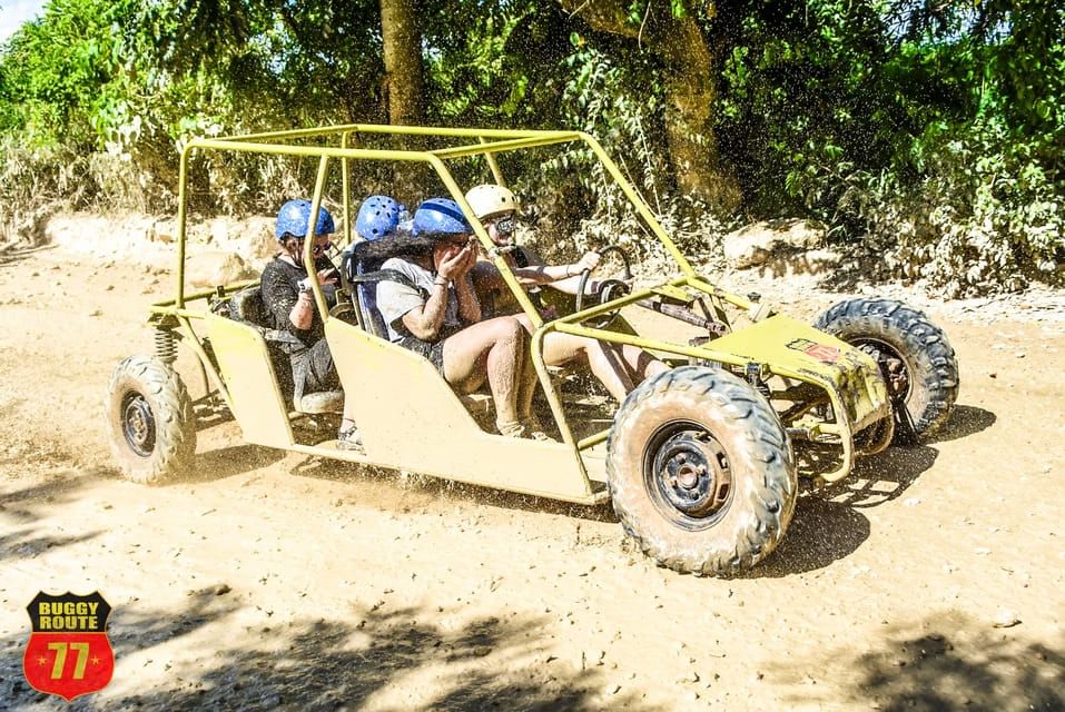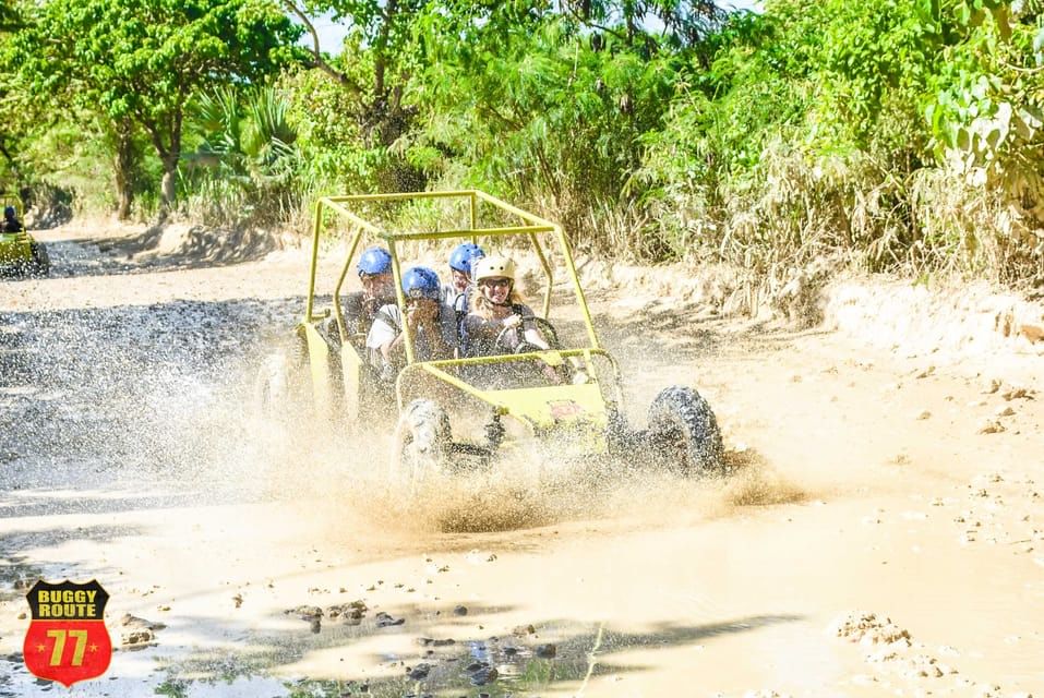 Start with hotel pickup in Punta Cana. Once you arrive at the starting point, your guide will tell you about the safety and operation of the buggies. From the ranch in Macao, go on an off-road adventure through the remote farmland of northern Punta Cana, passing palm trees and tobacco plantations with the Oriental mountain range in the background. The narrow, secluded country roads offer a safe haven for deep pools of mud that you will splash through. Make the first stop at a quaint country ranch for an introduction to local produce like cocoa, coffee, tobacco and Mamajuana, a Dominican aphrodisiac elixir. Enjoy a tasting of local Dominican coffee and chocolate. Jump back into your buggy and enjoy the off-road panoramic views of farmlands and distant mountains. Next stop is at a hidden cenote cave with a deep natural swimming hole. Jump in, cool off, and wash off the mud in refreshing underground waters. Embark on the longest drive of the day towards the beautiful Macao Beach, where you will have some time to relax on the beautiful white sands, before returning to the starting point.