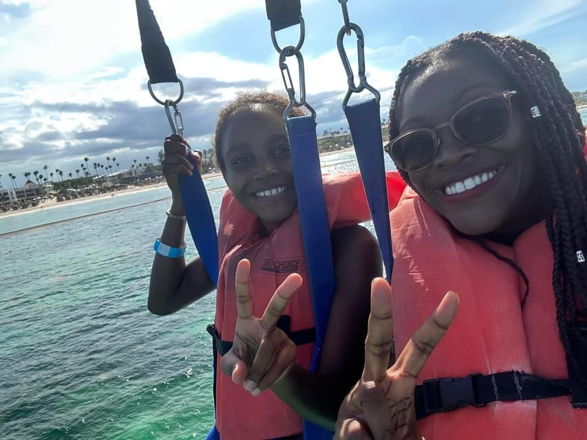 Whether you're an adrenaline junkie or just looking for a unique way to experience the stunning views of Punta Cana, our Parasailing excursion is the perfect choice for you. Come and join us for an unforgettable adventure in one of the most beautiful places in the world. Our team will pick you up from your hotel or resort in an air-conditioned vehicle and take you to the beautiful beaches of Bávaro or Cabeza de Toro, where you'll soar 30 meters above the Caribbean Sea for 10 minutes. Once we arrive, we'll get on board our speedboat to begin the parasailing adventure. With the help of our speedboat and the wind, you will cross the sky at high speed while admiring the breathtaking turquoise waters, the beautiful white sand beaches and lush Dominican jungle while safely suspended in the air with the help of our experienced professionals. Keep in mind that parasailing is 100% safe, as our equipment are always checked for optimal performance and a professional guide will assist you during takeoff, flight and landing. Parasailing is a thrilling adventure that promises pure adrenaline and fun for everyone. ***Round trip transportation is offered in Punta Cana for hotel guests. If you’re staying in an Airbnb, there will be a close pickup location.