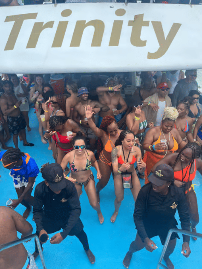 Island Exploration: As we sail towards stunning snorkeling destinations, take in the breathtaking views of coastal landscapes and distant islands. Our knowledgeable crew will provide interesting insights into the local marine life and landmarks, making the journey as informative as it is entertaining. Snorkeling Paradise/See the Dolphins: Anchor at pristine snorkeling sites teeming with vibrant coral reefs and exotic marine life. Dive into crystal-clear waters, and discover a world beneath the surface. Snorkeling gear is provided, ensuring you have the opportunity to witness the kaleidoscope of colors that inhabit the underwater realm. See the Dolphins as we sail past the amazing man made Dolphin Island. Party in the Natural Pool: Our experienced crew is dedicated to ensuring your experience is nothing short of amazing. Enjoy live music, DJ beats, and a festive ambiance as we cruise along the scenic coastline. Whether you prefer dancing on the deck or lounging with a refreshing drink, our party boat offers something for everyone.