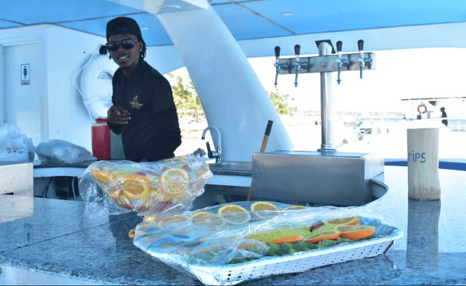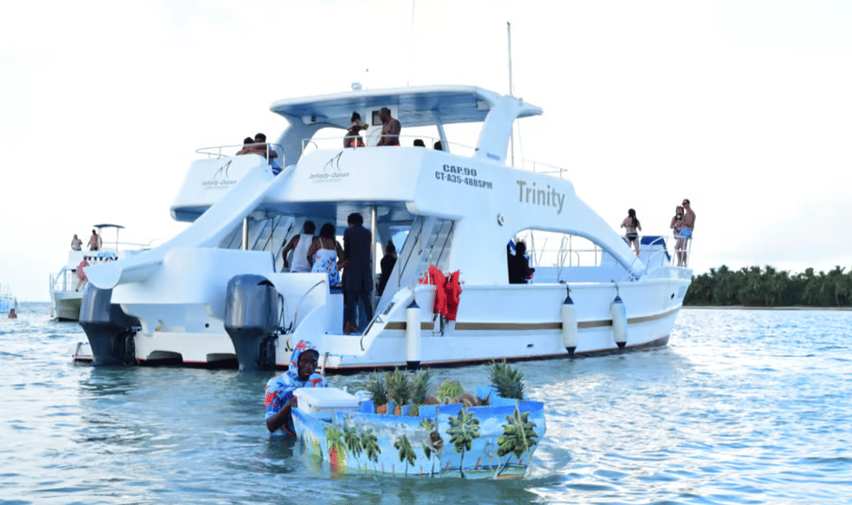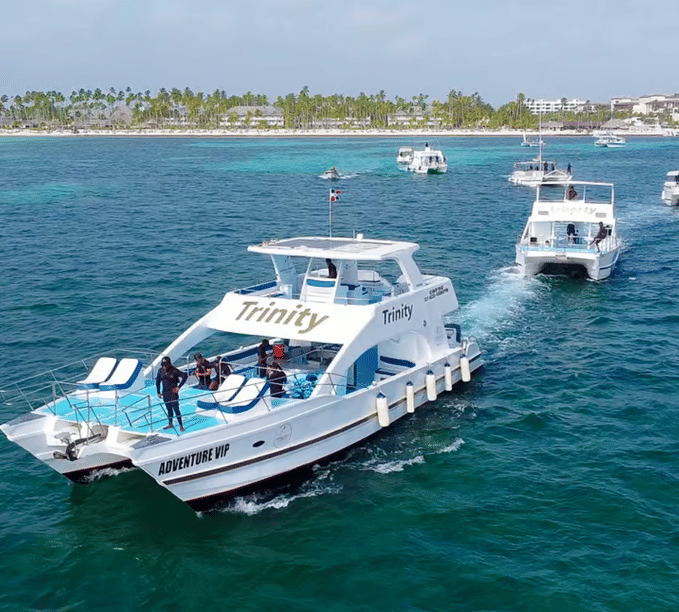 { { Welcome to the fun}} If you are looking to have a great time in puntacana with a good atmosphere, Good music and people ready to entertain you because here we are; more than ready to make Your vacation the best of Your life. Book with us this excursion in one of our catamarans where you can enjoy the beautiful private beaches of bavaro, a trip that will take you throughout the coastal area while enjoying the best entertainment of our staff. I invite you to live this Adventure. The activities to be carried out are the following: The first thing is that we proceed to pick up our clients at their destination and they are taken to the beach where our boat is waiting. There will be waiting for our team and in what comes out The tour can be making friends before boarding. 2nd. After boarding our catamaran get ready to have an unforgettable day and enjoy good music and open bar. Our team is ready to make you have the best experience. 3rd. Before opening the Bar we make a stop for snorkeling, an experience that you will always remember. Our guides will take care of Estes prepared to appreciate the beauty of the ocean in those wonderful crystal clear waters. 4th: and when we are on board again we open our Bar and here you can go enjoying Everything we have available for you (dances, drinks, snack) But All the fun you can imagine. 5th. Our next stop is at the natural pool, a paradise too beautiful, with a view of palm trees and where you can take a rich bath and share making friends. I assure you that you will not forget This Place. After making everything this collected, we go to the place where we start and proceed to take each client to their destination. Eye: Sometimes we make a Technical stop to see The Dolphins but it is not always.
