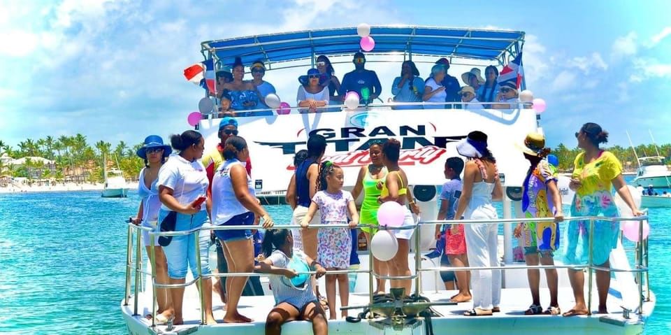 Spend a different time on board this boat animated by staff who will make you enjoy a pleasant time. A great way to spend a day on the coast of Punta Cana, this party boat cruise offers a mix of fun activities. Enjoy snorkeling (equipment included) and travel to a natural ocean pool. • Enjoy music, dancing and a festive atmosphere all the way back to the dock. • Half-day party boat cruise • Get out on the water – slides and snorkel gear are provided. • It is not necessary to pay for drinks since the boat has an open bar. LIVE AN UNFORGETTABLE EXPERIENCE! It is recommended for private parties, birthdays, weddings or any type of event. If your group is more than 30 people you can request the private boat at no additional cost.