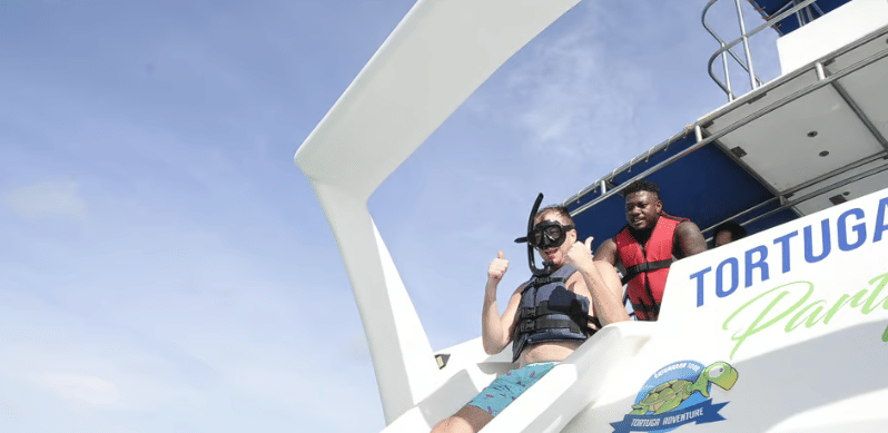 Party boat. Get the true Caribbean feeling with this incredible 3-hour trip. We go up directly from the beach, sail along the beautiful coast of Bávaro until we reach a natural reef for snorkeling, then sail towards the famous natural pool. Have a drink in waist-deep warm water and have a lot of fun. Drinks, music, everything included! Then we go to the natural pool to enjoy a pleasant swim in calm waters with national drinks and snacks included. Barco de fiesta. Consigue la verdadera sensación caribeña con este increíble viaje de 3 horas. Subimos directamente desde la playa, navegamos a lo largo de la hermosa costa de Bávaro hasta llegar a un arrecife natural para bucear, luego navegamos hacia la famosa piscina natural. Tómate una copa en aguas cálidas en la cintura y diviértete mucho. ¡Bebidas, música, todo incluido! Luego vamos a la piscina natural para disfrutar de un agradable baño en aguas tranquilas con bebidas nacionales y aperitivos incluidos.