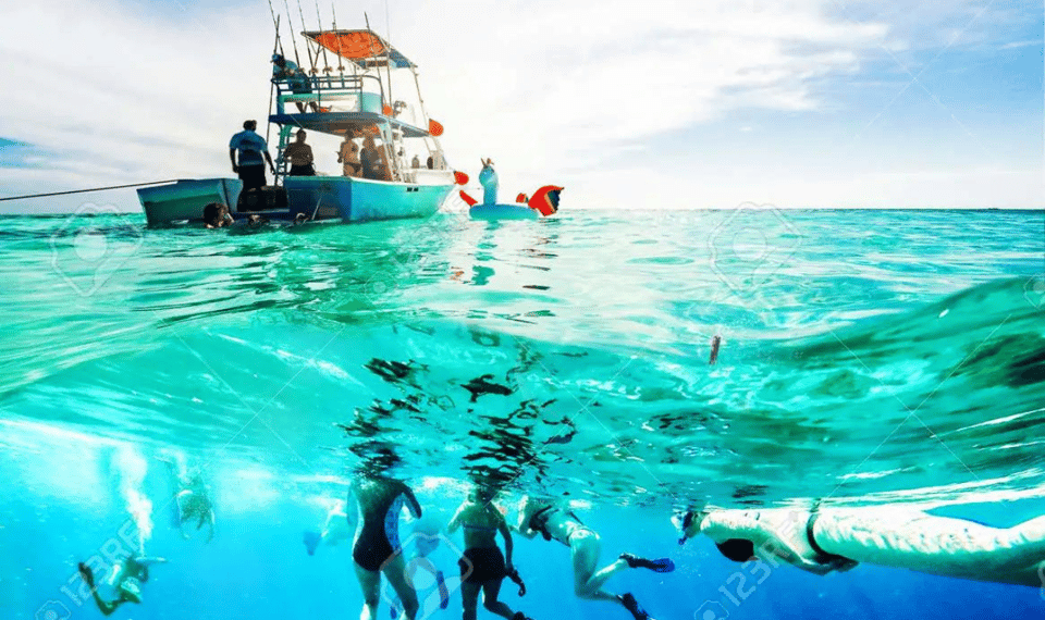 It’s an exciting shore excursion from Punta Cana, Dominican Republicwith our catamaran we make the most fun booze cruise with open bar of the best national drinks, nachos with sauces and tropical fruits, snorkel in the coral reef with colorful fish and natural pool. We are a team of people prepared to provide 3 full hours of a pleasant experience in Punta Cana. We start at 3:00 PM, but send you the pick-up time after booking because it depends on your hotel or accommodation. Are you ready for an unforgettable afternoon with our catamaran along the coast of Bávaro Beach at Punta Cana. The best way to enjoy a day with beautiful views and beautiful crystal clear waters.. You’ll snorkel before the sun goes down and dance while enjoying a cold drink at the floating bar