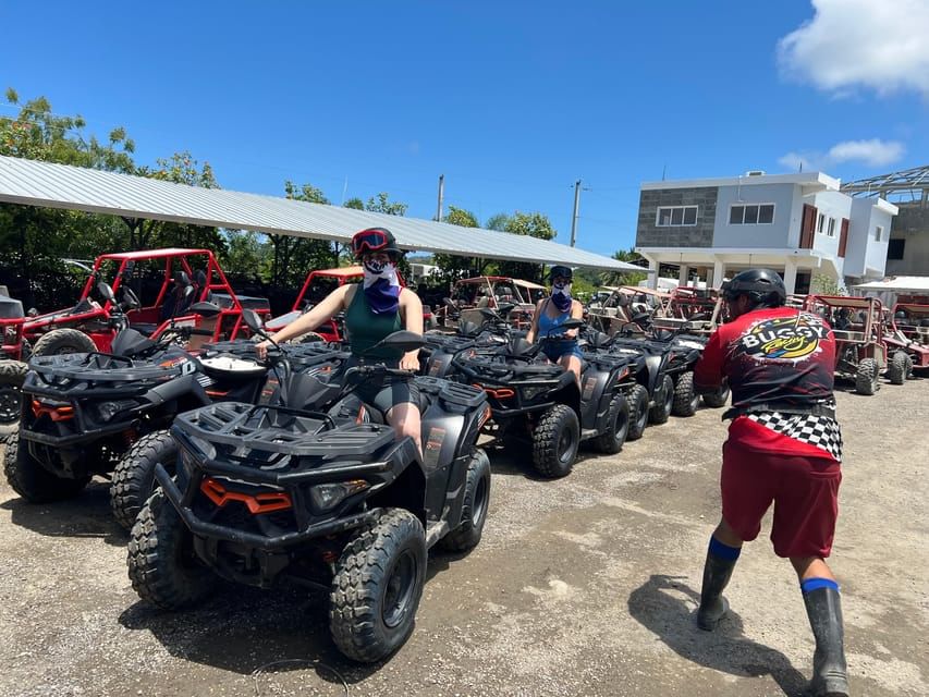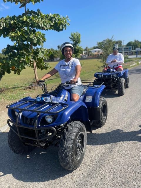 Get ready for an exhilarating ATV adventure in Puerto Plata! After meeting at the designated location, you'll be picked up and driven 15 to 25 minutes to the starting point. Upon arrival, you'll be provided with your own ATV and receive a brief safety orientation to ensure you feel confident and secure before hitting the trail. Guided by an experienced ATV leader, you’ll embark on an exciting journey through Puerto Plata’s countryside, taking in breathtaking scenery along the way. The tour offers several opportunities to stop, capture photos, and immerse yourself in the stunning natural surroundings. As part of the experience, you’ll also enjoy some relaxing beach time, with approximately 20 minutes to unwind by the water. Important Reminders: No flip-flops or sandals allowed for safety reasons. Bring a handkerchief or bandana to cover your mouth from dust (can be purchased at the location for $5 per pair). Children 8 years and older can join the adventure and will share a double ATV with an adult (the adult will drive).