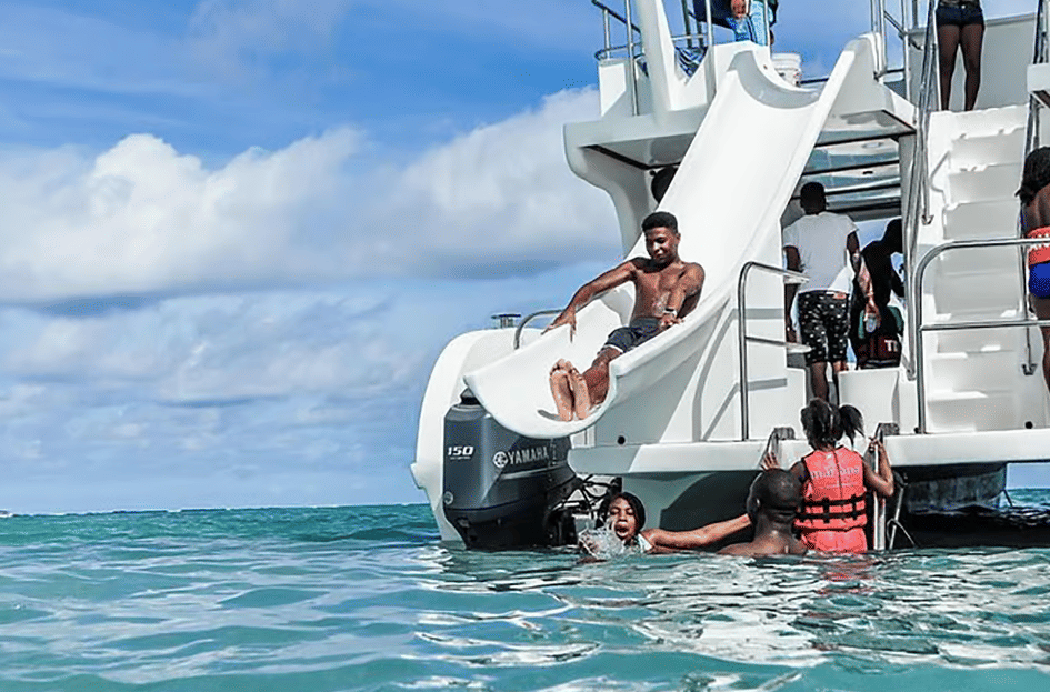 Spend a different time on board this boat animated by staff who will make you enjoy a pleasant time. A great way to spend a day on the coast of Punta Cana, this party boat cruise offers a mix of fun activities. Enjoy snorkeling (equipment included) and travel to a natural ocean pool. • Enjoy music, dancing and a festive atmosphere all the way back to the dock. • Half-day party boat cruise • Get out on the water – slides and snorkel gear are provided. • It is not necessary to pay for drinks since the boat has an open bar. LIVE AN UNFORGETTABLE EXPERIENCE! It is recommended for private parties, birthdays, weddings or any type of event. If your group is more than 30 people you can request the private boat at no additional cost.