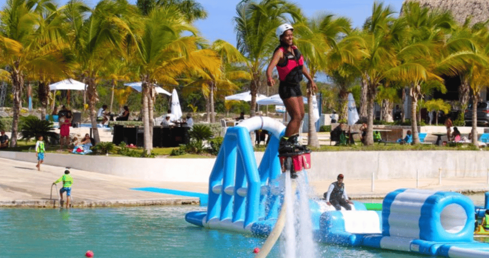 Enjoy Flyboarding and feel like flying at a Wakeboarding and Water-park. Enjoy pickup and drop-off at your hotel in Punta Cana and a pass that gives you access to pools and the beach, after the 30 minutes of Flyboarding activity.