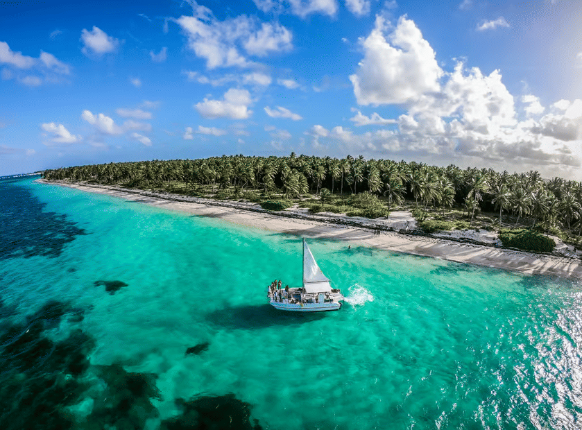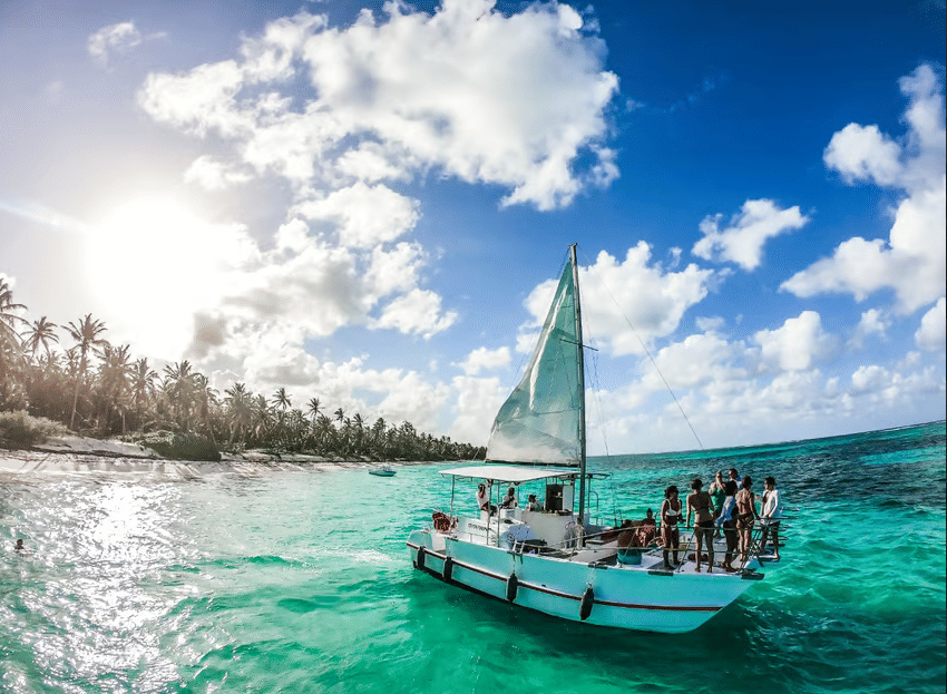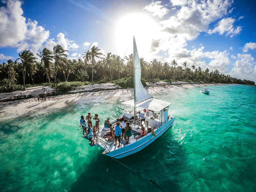 Embark on a 3-hour group catamaran cruise from Punta Cana. Travel from Bávaro to Cabeza de Toro while listening to music.