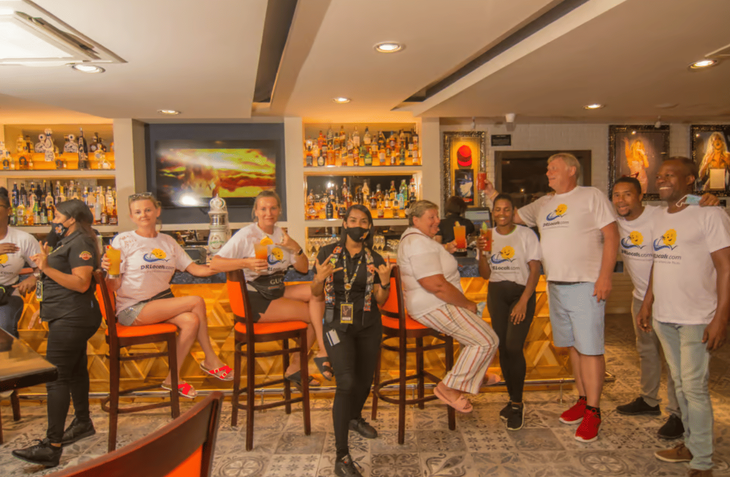 ✓ Stop 1: Hard Rock Café in Punta A fabulous decoration like the brand itself does it in each of its locations worldwide. This is the perfect first spot to spend a nice time drinking cocktails. ✓ Stop 2: Wacamole This is one of the most famous bars in Punta Cana, located on the main street where nightlife happens - Los Corales. Mexican-style decoration, live music (depending on the day), and delicious snacks like nachos, tacos, and burritos to enjoy with crafted cocktails like Margaritas or Mojitos made with local ingredients like Chinola (passion fruit). Great spot for tequila shots, and taking pictures after! :) ✓ Stop 3: Dominican Corner A traditional Caribbean bar, decorated with handcrafted artwork, fruits, and plants. The perfect spot to try local drinks like Cuba Libre, made with Dominican Rum, or the most loved beer on the Island, President. ✓ Stop 4: La Tribu The indigenous interior design of this bar will create the perfect environment to listen to local music and taste craft cocktails. ✓ Stop 5: Stop Play Located in Plaza Turquesa, this bar will make you feel like you have already arrived at the beach. its decoration includes kayaks, bikes, and surfing tables. Great live music and karaoke nights. They are famous for their frozen cocktails (frappe), seafood snacks, chicken fingers, hot dogs, and hamburgers. This is the last stop on the tour.