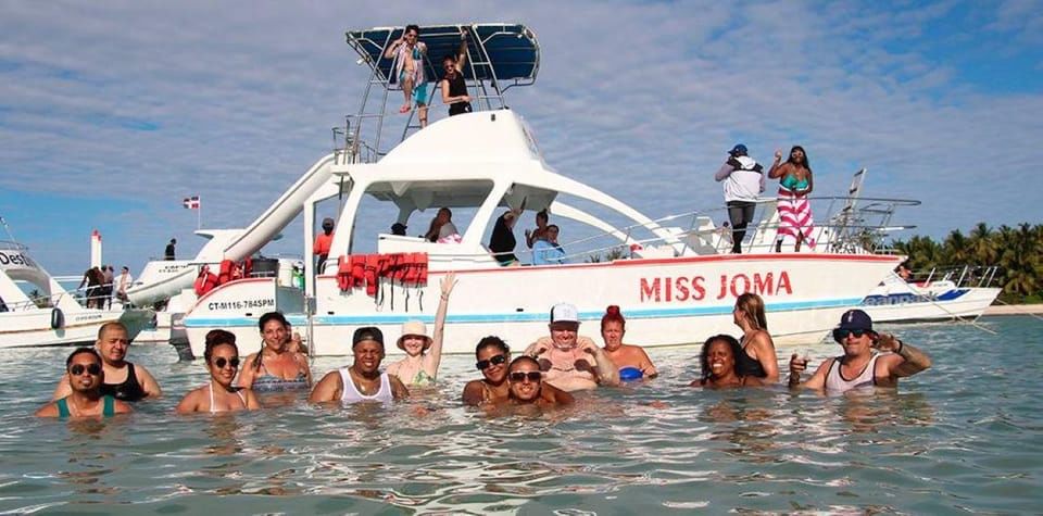 Embark on an unforgettable party aboard a lively catamaran. Feel the rhythm of the music, savor refreshing drinks, and dance under the sun, creating unforgettable memories at sea. Guaranteed fun on this party boat. Enjoy stunning sea views as you sail through crystal-clear waters, accompanied by vibrant music that keeps the energy high. Sip on refreshing drinks while soaking in the lively atmosphere, perfect for dancing, laughing, and creating unforgettable memories. Swim with the fish, visit the dolphin platform, and share fruits, local drinks (Rum, Soft Drinks, Beers, Mama Juana, Juices, Mojitos, and Agua) following the natural pool with the crazy hour, drinking, dancing, and sharing snacks and sauces.