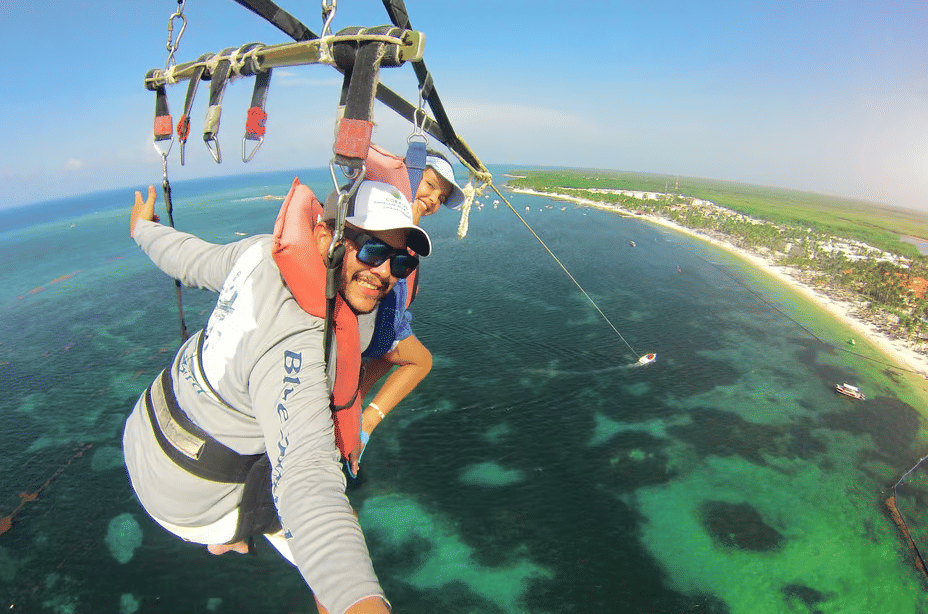 Parasailing in Punta Cana is an incredible adventure and one of the top things to do in Punta Cana. Viewing the coastline from 200 feet up in the air as you set sail is absolutely breathtaking. Parasailing is a simple and fun experience for all family members. You can do it alone, with your partner or up to 3 people at the same time. The tour starts with a pick up from your hotel and driven to Cabeza de Toro beach. You will then travel by boat with other people in the warm, blue waters of the Caribbean Sea. There you will wait a couple of minutes your turn to enjoy an exciting paragliding flight of 10 minutes duration. You will enjoy an incredible view along the entire coast of Bávaro-Puntacana. You do not need to have previous experience as an expert guide will accompany you to help you enjoy your wonderful flight experience. You will then return to the beach and be transported back to your hotel.