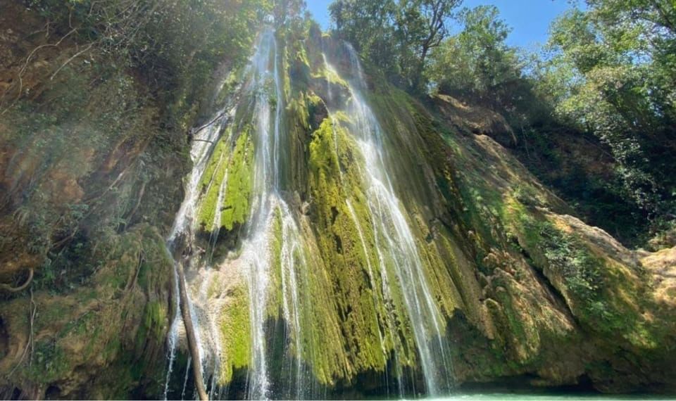 between 7:00 and 8:00, we will pick you up at your hotel in punta pana and head to samaná. once there, we will board a bus that will take us on a panoramic tour of the city of Santa Bárbara de Samaná. From the bus you will be able to see the charming colorful houses of this town, as well as the tropical landscapes that surround it. Next we will go to a hacienda, from where we will walk until we reach the El Limón waterfall. If you prefer, you can also do this tour on horseback. once there, you can bathe in the pool of turquoise waters that forms under the waterfall. Upon returning from the waterfall, we will go to the center of Samaná to regain strength with a delicious buffet lunch that will include fresh fish, beans, rice and other traditional foods. Next, we will board a catamaran to reach Cayo Levantado. This idyllic setting will be the perfect place to enjoy a piña colada, chin-chin! Finally, we will return to the coast to take the minibus and depart for Punta Cana. Arrival at your hotel is scheduled between 7:00 p.m. and 7:30 p.m.