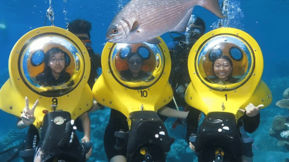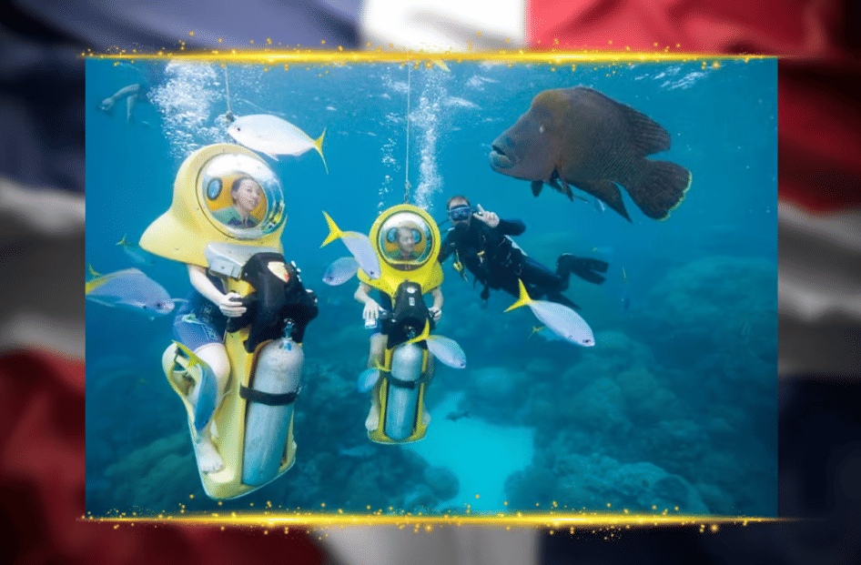 Experience the emotion of diving without knowing how to swim with Scubadoo, an incredible activity designed for beginners. We will pick you in your hotel and take you to the beautiful coast of Toro's head in Punta Cana. You will board a boat that will take you to a comfortable platform, where our specialized team and a Dive Master guide will wait for you. Immerse yourself in an underwater adventure sitting in a underwater scooter, comfortably breathing 3-5 meters deep, without the need for mask or tube. Enjoy 15-20 minutes of direct interaction with fish and the fascinating underwater world. Then, you can snorkel at the official diving point "El Niño", accompanied by a lifeguard guide to guarantee your safety while you explore corals and local fish. Finally, you will address the panoramic One (Glass Bottom Boat), enjoying a 30 -minute navigation through the Caribbean marine environment. We operate from Monday to Saturday, twice a day, with an approximate duration of 3 hours and 30 minutes. Immerse yourself in an unforgettable underwater experience with Scubadoo!