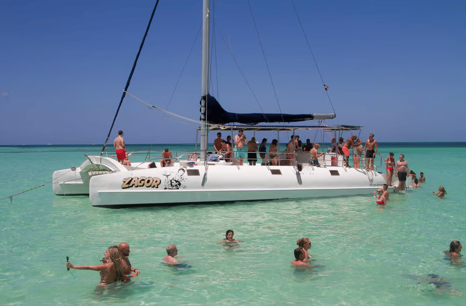 Hotel Pickup: The day begins with a convenient pickup from your hotel in Punta Cana. You'll travel in a comfortable, air-conditioned vehicle to the charming fishing village of Bayahibe, where your journey to Isla Saona starts.  Boat Ride to Isla Saona: From Bayahibe, board a speedboat or a catamaran for a scenic ride across the turquoise waters of the Caribbean Sea. Enjoy stunning coastal views and feel the sea breeze as you make your way to the island.  Natural Pool: On the way to Isla Saona, you'll stop at a natural swimming pool, a shallow sandbank in the middle of the ocean. Here, you can wade in the waist-deep water, collect starfish, and take stunning photos of this unique natural setting.  Arrival at Isla Saona: Upon arrival at Isla Saona, you'll be greeted by the sight of swaying palm trees, powdery white sand beaches, and inviting blue waters. The island is part of the Cotubanamá National Park and boasts an untouched, natural beauty.  Beach Time and Activities: Spend your time on Isla Saona relaxing on the beach, swimming in the warm waters, or exploring the island. Beach chairs and umbrellas are available for your comfort. You can also engage in optional activities such as snorkeling to discover the vibrant marine life, beach volleyball, or simply taking a leisurely walk along the shoreline.  Lunch: Enjoy a delicious, buffet-style Dominican lunch served right on the beach. The menu typically includes a variety of grilled meats, fresh seafood, salads, rice, pasta, and local fruits. Refreshing beverages such as soft drinks, rum, and beer are also provided.  Leisure Time: After lunch, there's more time to relax and soak up the sun, swim, or explore the island at your own pace. The serene environment offers the perfect backdrop for unwinding and enjoying nature.  Return to Punta Cana: In the afternoon, board the boat for the return journey to Bayahibe. Depending on your tour, you may return by catamaran, enjoying music, dancing, and a festive atmosphere on board. Upon arrival in Bayahibe, you'll be transferred back to your hotel in Punta Cana.