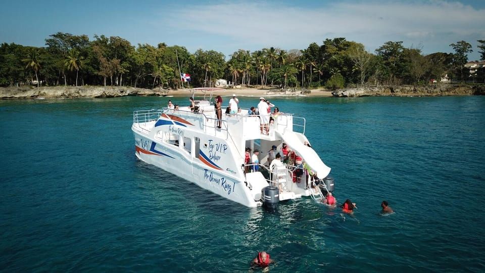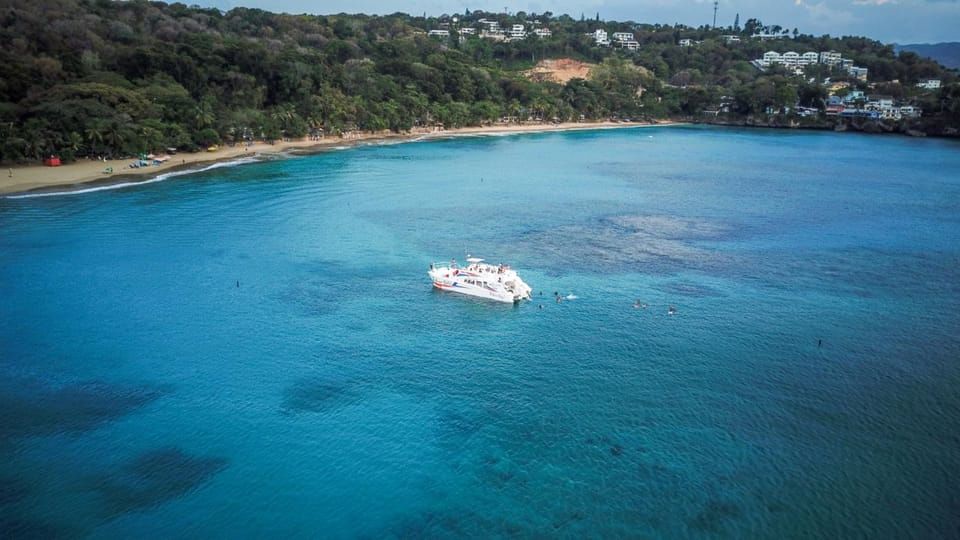A totally private and relaxing catamaran cruise with a personal and professional guide. We sail towards an unforgettable adventure! Take advantage of the opportunity to experience one of the most beautiful sunsets aboard a catamaran that departs from Sosúa Bay. The first stop will consist of a beautiful underwater tour. The marine guide will snorkel with you, showing you all the fish and varieties that the place has to offer. After 25 minutes, you will return to the ship and enjoy an open bar with local drinks. Another great spot is Three Rocks, Los Cabezos (also called canyon) which features 3 large vertical rocks where many fish are found. A full barbecue lunch, soft drinks and alcohol are included. Enjoy this adventure for half a day and then have the rest of the day free. It has a good music system